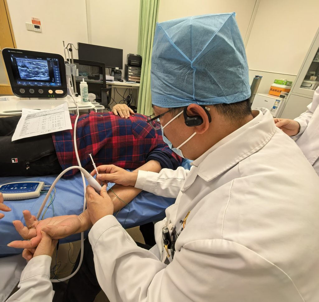圖注:上海市養志康復醫院靳令經教授為首例受試者進行注射
